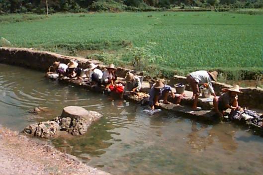 Wash day in the rice fields