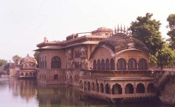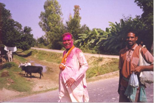 "You can ride your bikes there," said the young woman with a brother in Tempe, Arizona, "or you can go trekking by the path." At lunch we were surprised to see another white boy. His name was Scott and he was in town for the day to set up an Indian-Canadian cultural exchange program. It quickly became established that he knew our friend Ashok in Bombay and was m.o.t. --a member of our tribe. We went back into town following the "trekking" route --basically a gravel track liberally sprinkled with various shapes of feces. A bunch of feral Indian dudes showed us where the baths were, in a compound incorporating several colorful temples, another (shabbier) motel and a number of grayish pools filled with skinny Indians furiously attending to their ablutions.