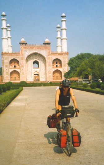 The leafy park-like setting of New Delhi belies the fact that it's an ecological disaster area. "Air you can chew" is what we decided Delhi's motto should be. We rode through the murky stuff accompanied by Matthew, the Australian cyclist we met on the plane from Bangkok, away from his homeland for the first time (so we were stunned to learn later over lunch later in the day). Pedaling south through the colonial remnant that is New Delhi was a piece of cake, pleasant even. It wasn't until we hit the sprawling suburbs beyond the British city that we tasted the real flavor of the Indian road.