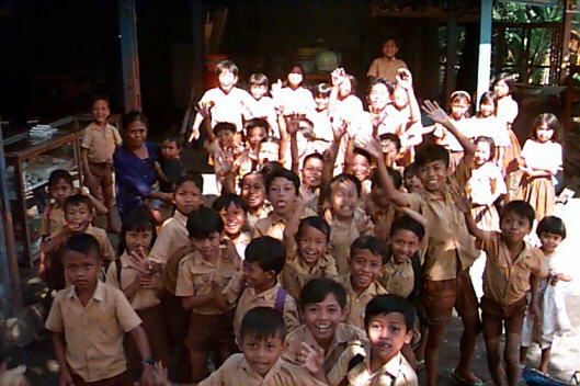 Arriving at the pier we met Paul the Danish cyclist. Whackily dressed in suspenders holding up his shorts, fair skin unscathed by the fearsome sun, he was leaving Indoland early because of the punishing bright orb above. He suggested an alternate route to Senggigi for us along quiet roads. If Bali had been a bad dream, Lombok became a great drug-trip. While dazzled by gazillion shades of green rendered green jungle and fields of rice we passed kampungs (villages) full of smiling waving children.
