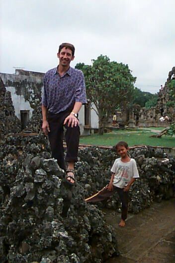 Indonesians don’t like being alone; as with every other vehicle we’d chartered here, this rusty bucket of bolts included a very talkative driver plus his silent underling. With Fred sleeping in back with the bikes, I rode in front, sandwiched between the truck dudes. As well as posing the usual questions (Are the cars this ugly in your country? How many slaves do you have?) the driver provided me with a number of interesting insights. I learned that gas costs only 700 rupiah per liter (less than 35 US cents per gallon, at today’s exchange rate), yet transport dudes like him were lucky to net 5,000 per day. I also learned that the next day was a national holiday. “An Islamic holiday?” I asked. “Yeah,” replied the loquacious driver, “it’s an important one, where everyone cuts up animals. You know, victims.” When we passed through a scruffy-looking town called Kragan, he commented that there were lots of naughty children (anak-anak nakal) here. “What do you mean?” I asked. “Well, a couple of months ago —with the monetary crisis and all— they ran amok and trashed all the shops here. Some people got hurt.” (It should be noted here that “amok”, along with “orangutan”, “bamboo” and “ketchup”, is one of the few English words borrowed from Indo-Malay). I wondered aloud whether people would be running amok today, with the weekend’s announcement that seven banks had been dissolved and seven more had been put under government control. After a few moments of deep contemplation came the driver’s blithe response: “Maybe.”